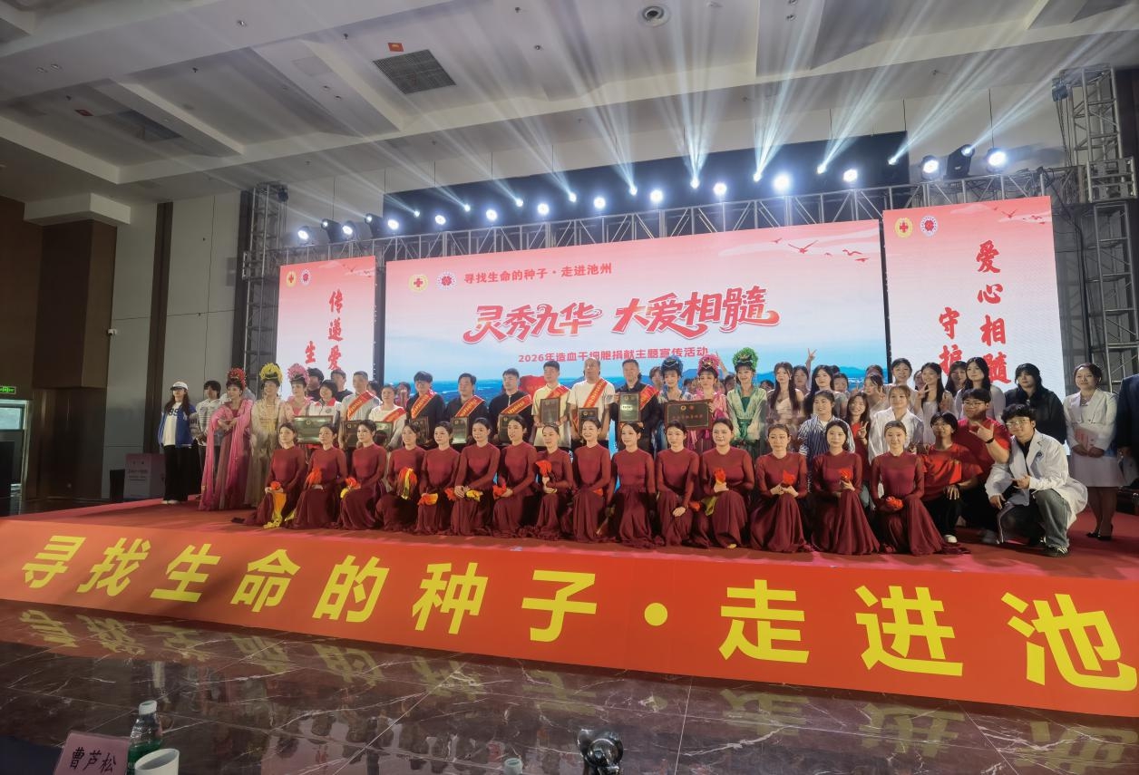 为进一步弘扬“人道、博爱、奉献”的红十字精神,广泛普及造血干细胞捐献知识,动员社会力量参与公益救助事业,2026年4月25日上午,由安徽省红十字会主办、池州市红十字会承办的“寻找生命的种子·走进池州—灵秀九华 大爱相髓”2026年造血干细胞捐献主题宣传活动在池州开元大酒店圆满举办。