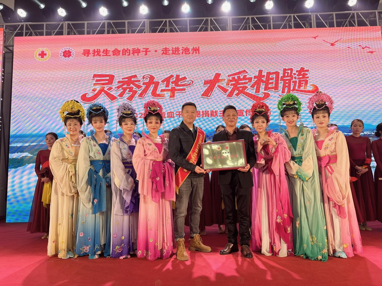 活动现场举行表彰仪式,我院李兆林同志获评池州市造血干细胞捐献突出贡献个人,剧院荣膺池州市造血干细胞捐献突出贡献集体荣誉称号。同时,剧院受邀参演经典黄梅戏选段《天仙配·鹊桥》,以传统戏曲之美传递人道博爱奉献精神,为公益宣传注入浓厚文化力量。